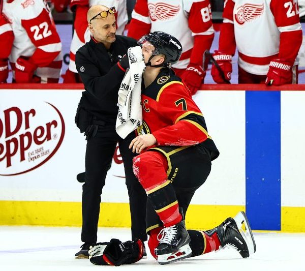 Ottawa Senators captain Brady Tkachuk was acknowledged before Thursday’s game for winning a gold medal with Team USA at the 2026 Winter Olympics in...